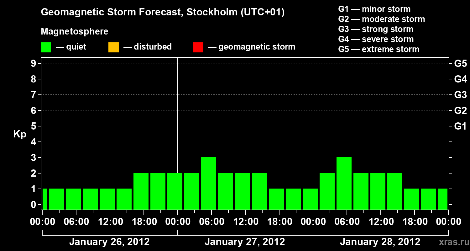 Geomagnetic storm forecast in Stockholm for Jan 26, 2012