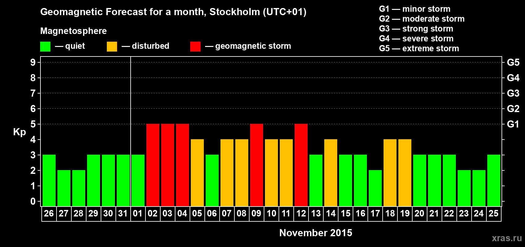 Geomagnetic storm forecast in Stockholm for Oct 26, 2015
