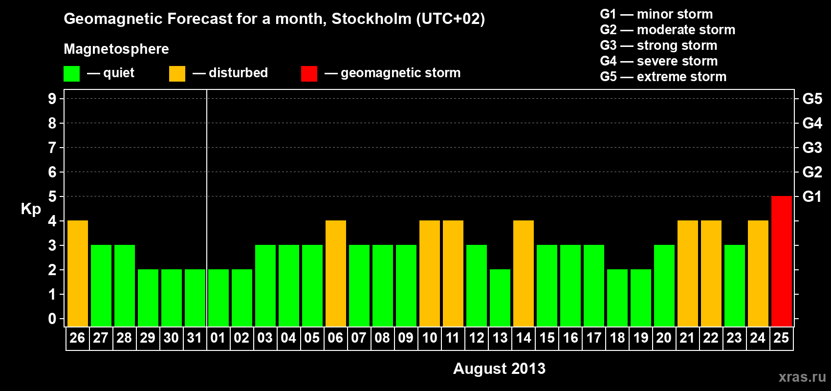 Geomagnetic storm forecast in Stockholm for Jul 26, 2013