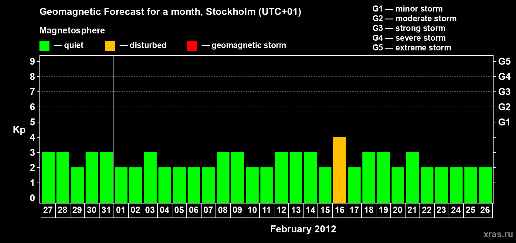 Geomagnetic storm forecast in Stockholm for Jan 27, 2012