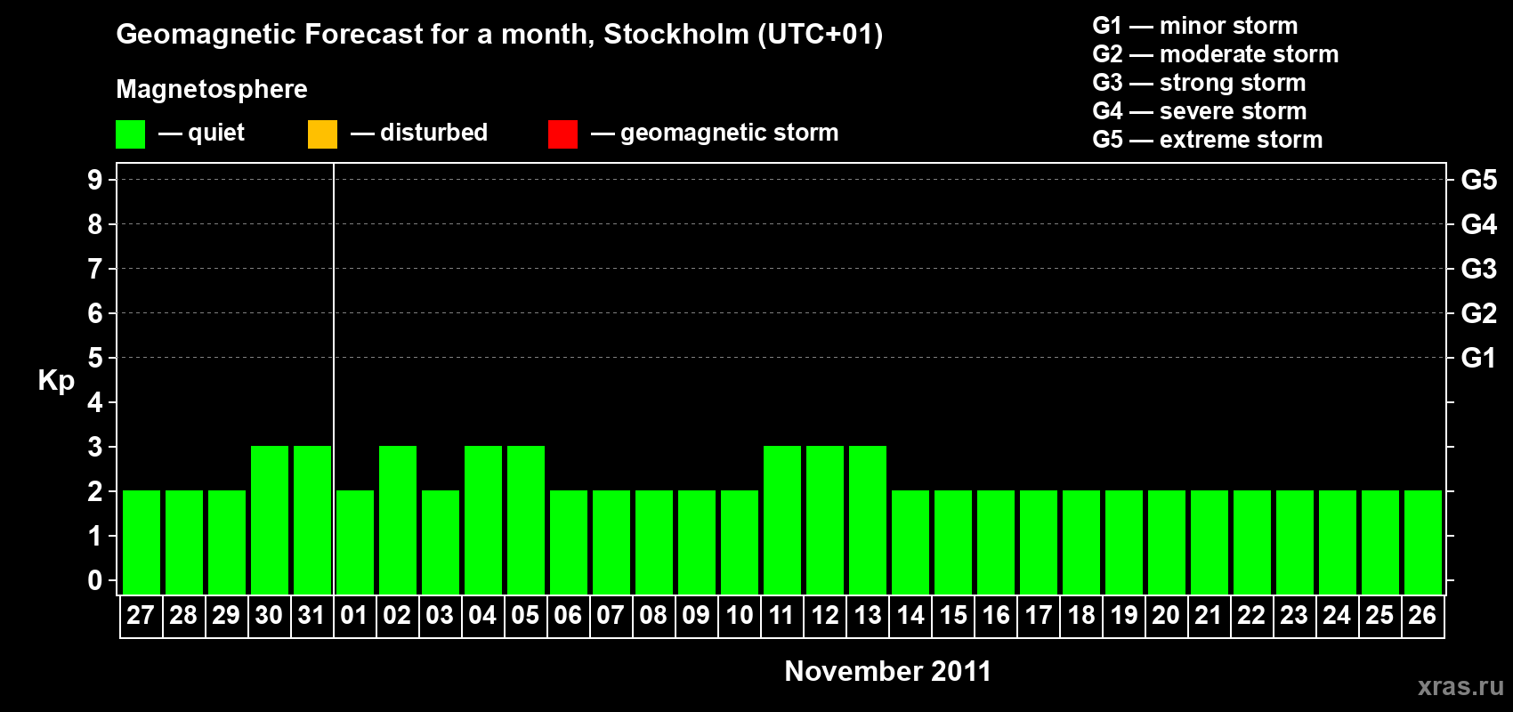 Geomagnetic storm forecast in Stockholm for Oct 27, 2011