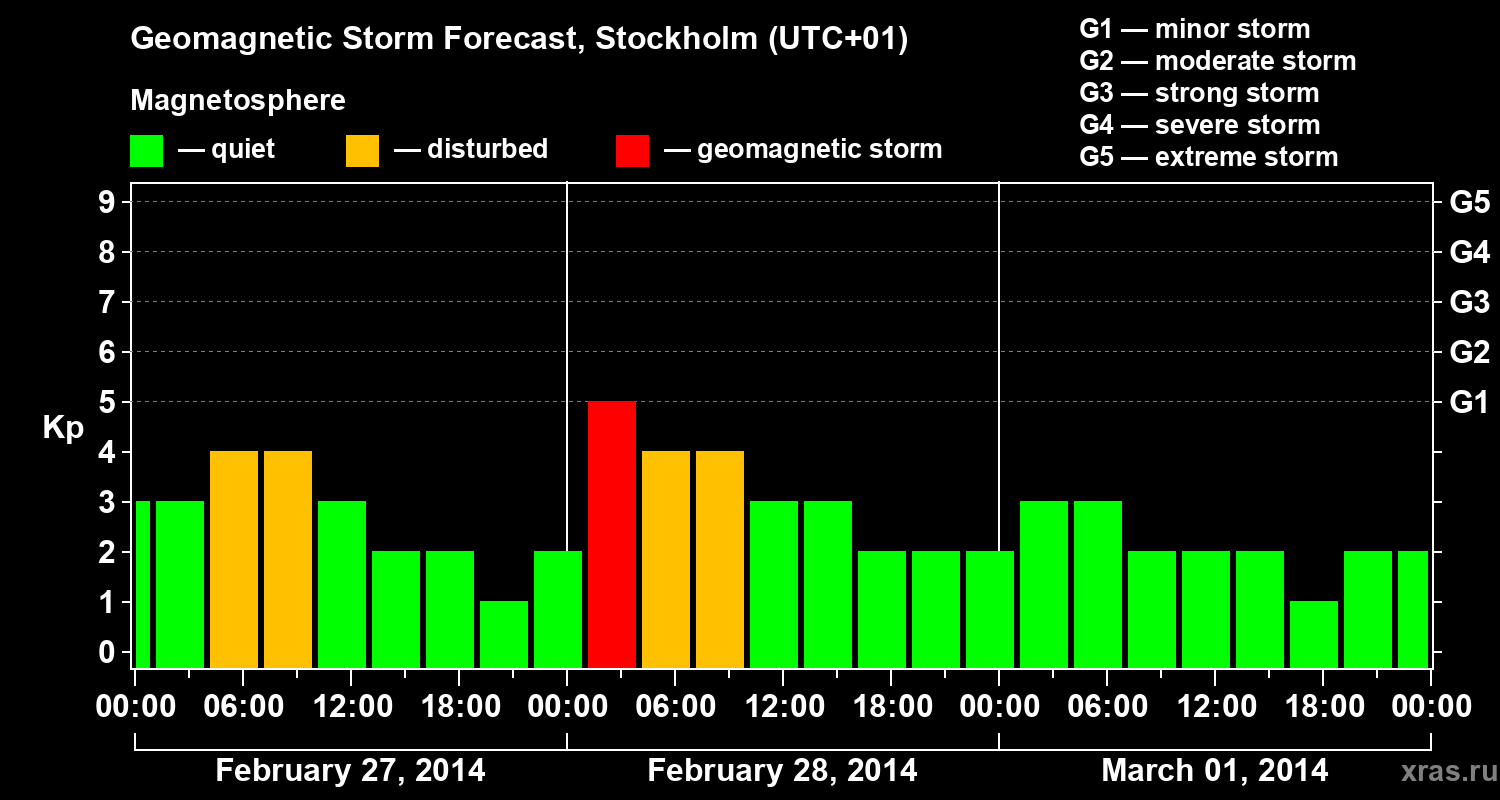 Geomagnetic storm forecast in Stockholm for Feb 27, 2014