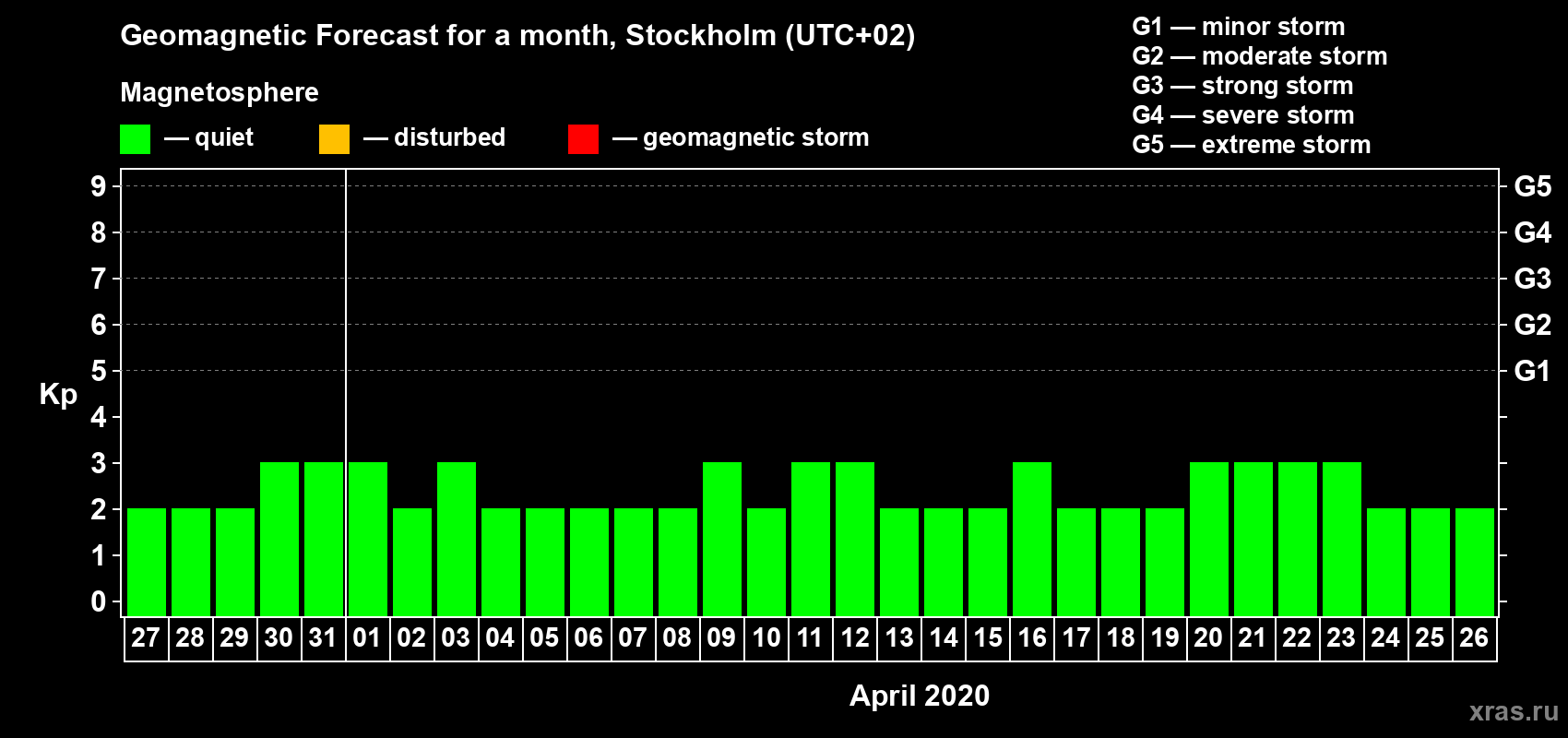Geomagnetic activity forecast in Stockholm — Mar 27, 2020