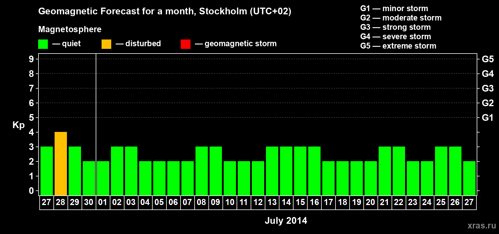 Geomagnetic storm forecast in Stockholm for Jun 27, 2014
