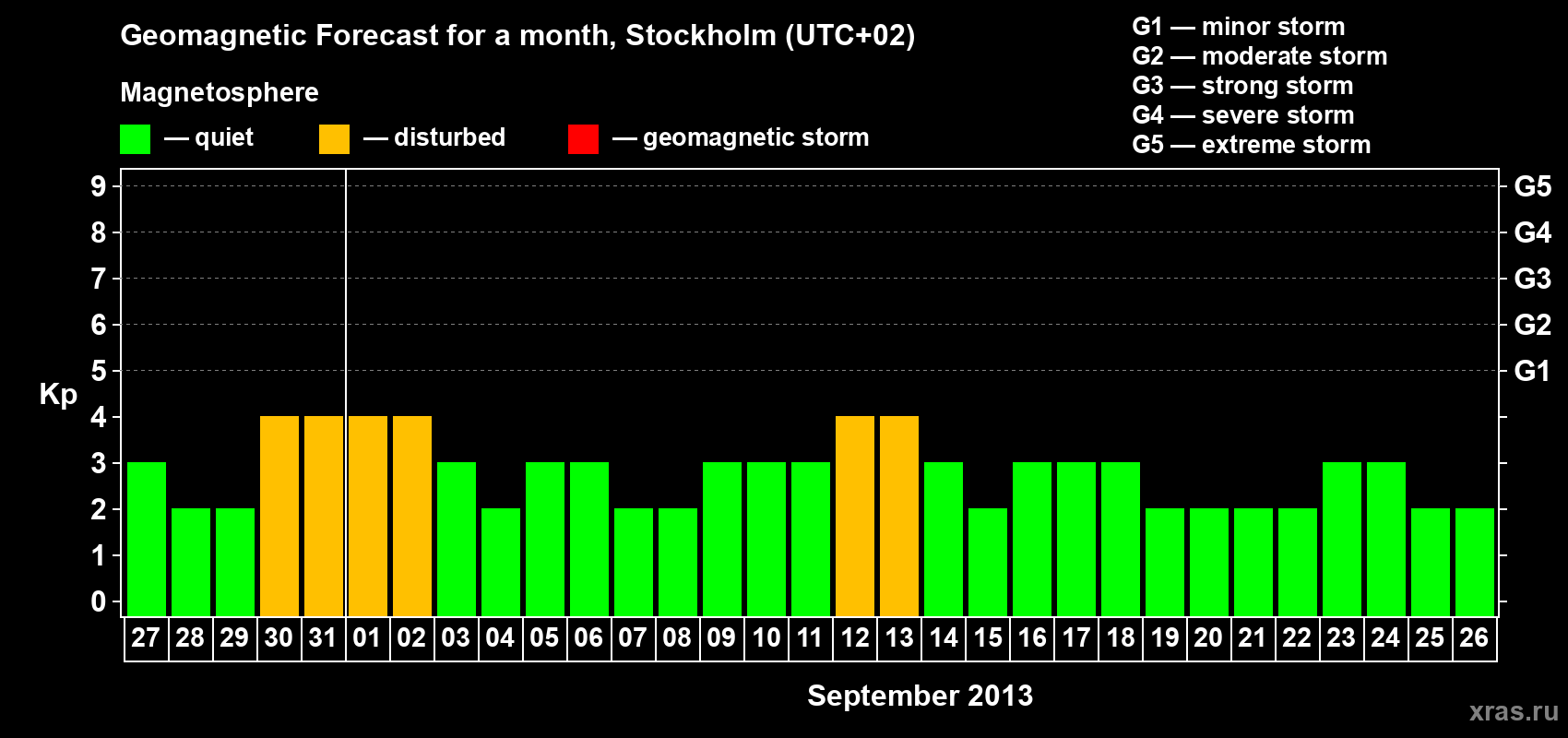Geomagnetic storm forecast in Stockholm for Aug 27, 2013