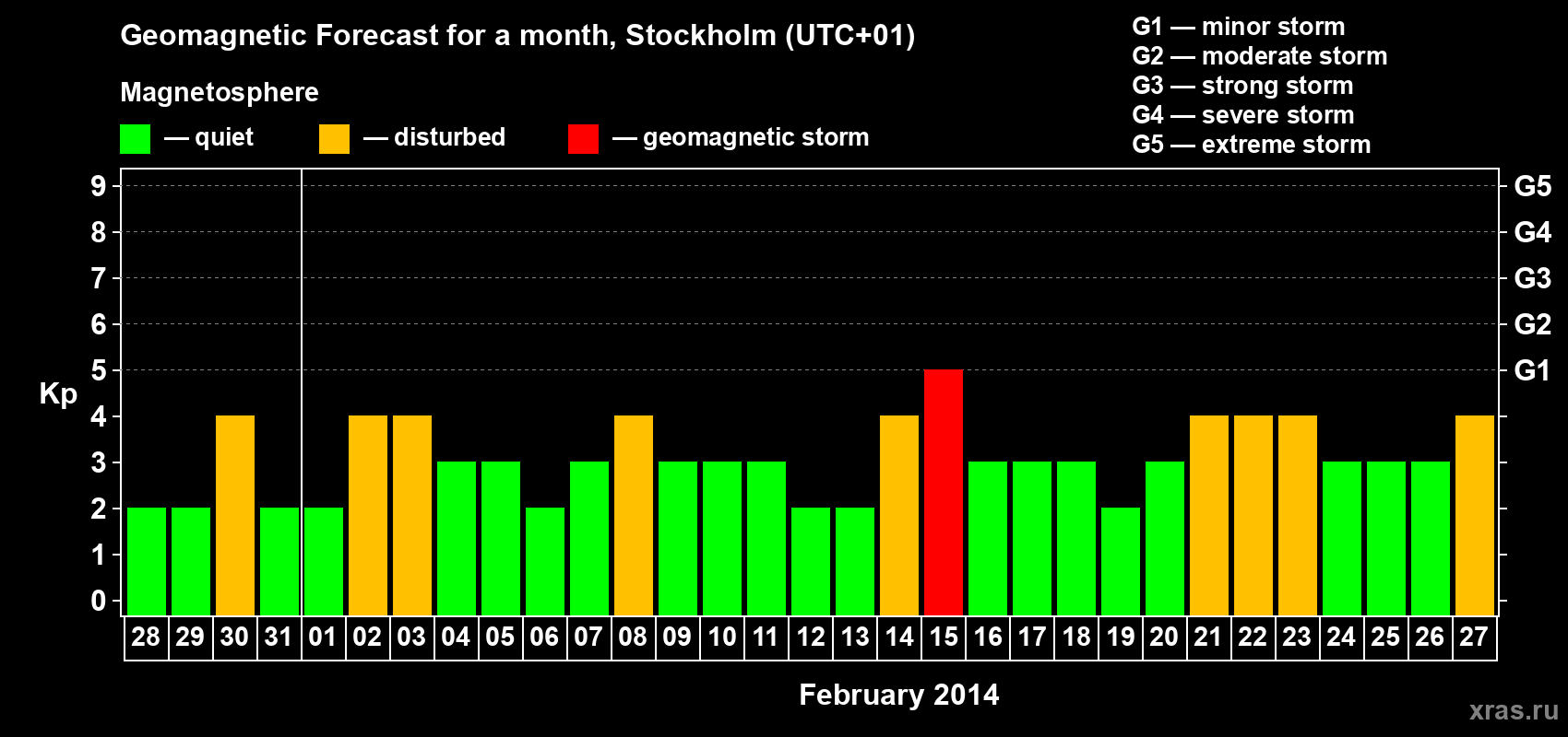Geomagnetic storm forecast in Stockholm for Jan 28, 2014