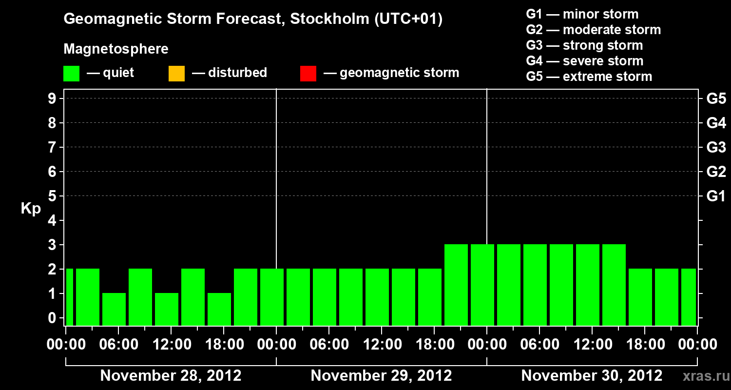 Geomagnetic storm forecast in Stockholm for Nov 28, 2012