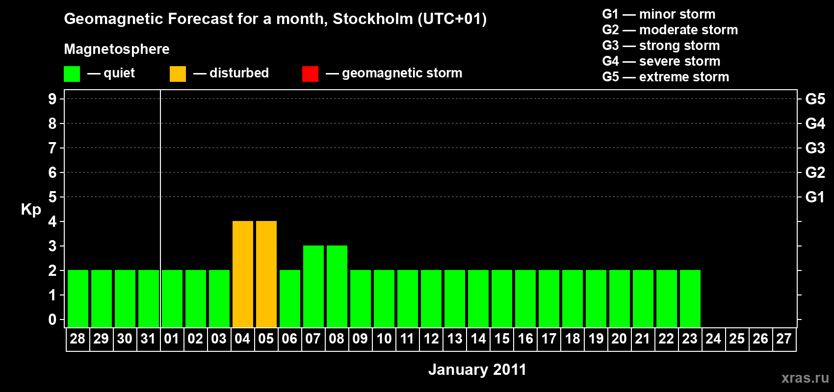 Geomagnetic storm forecast in Stockholm for Dec 28, 2010