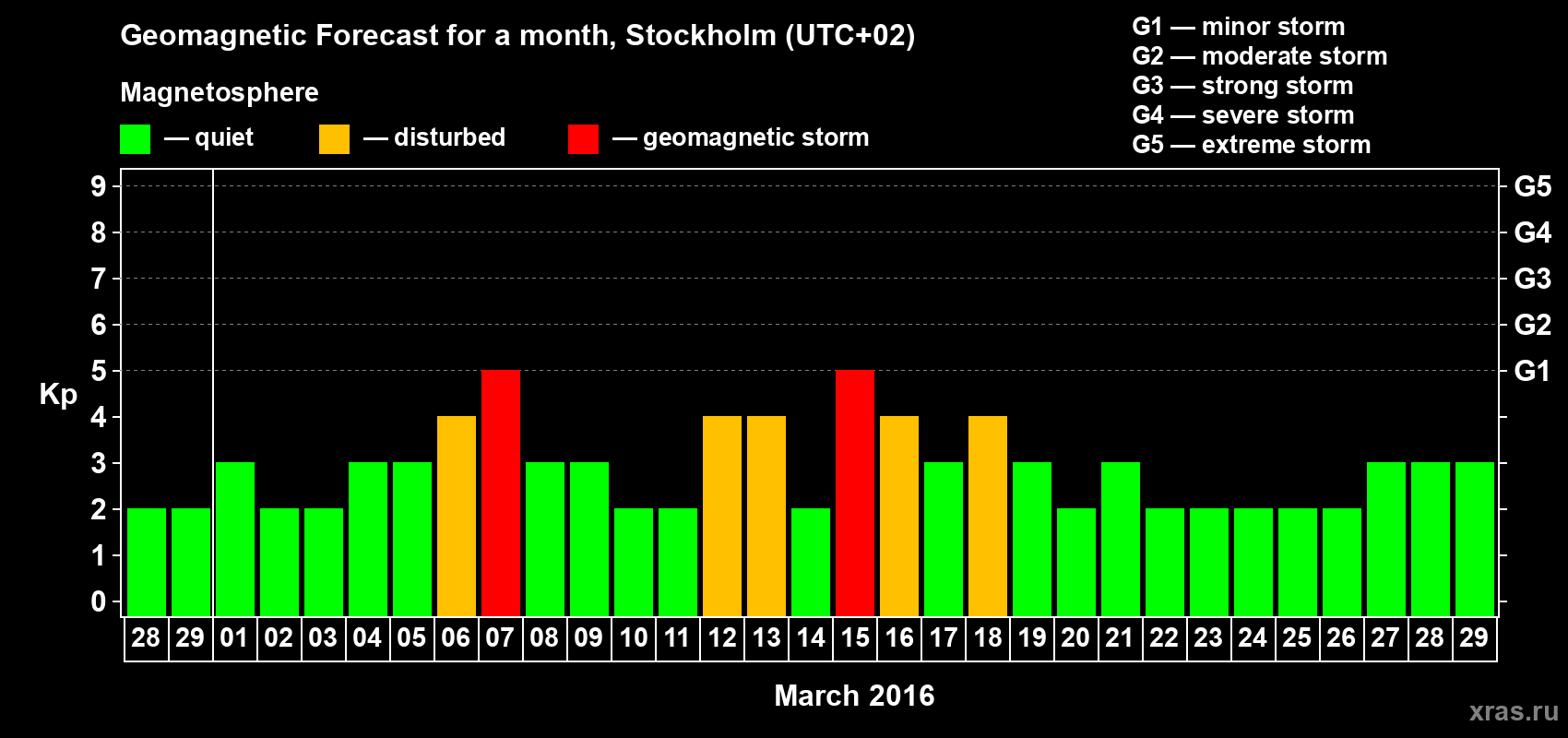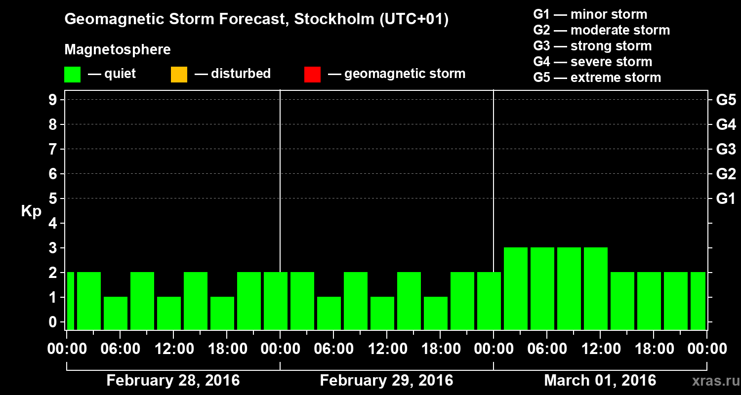 Geomagnetic storm forecast in Stockholm for Feb 28, 2016