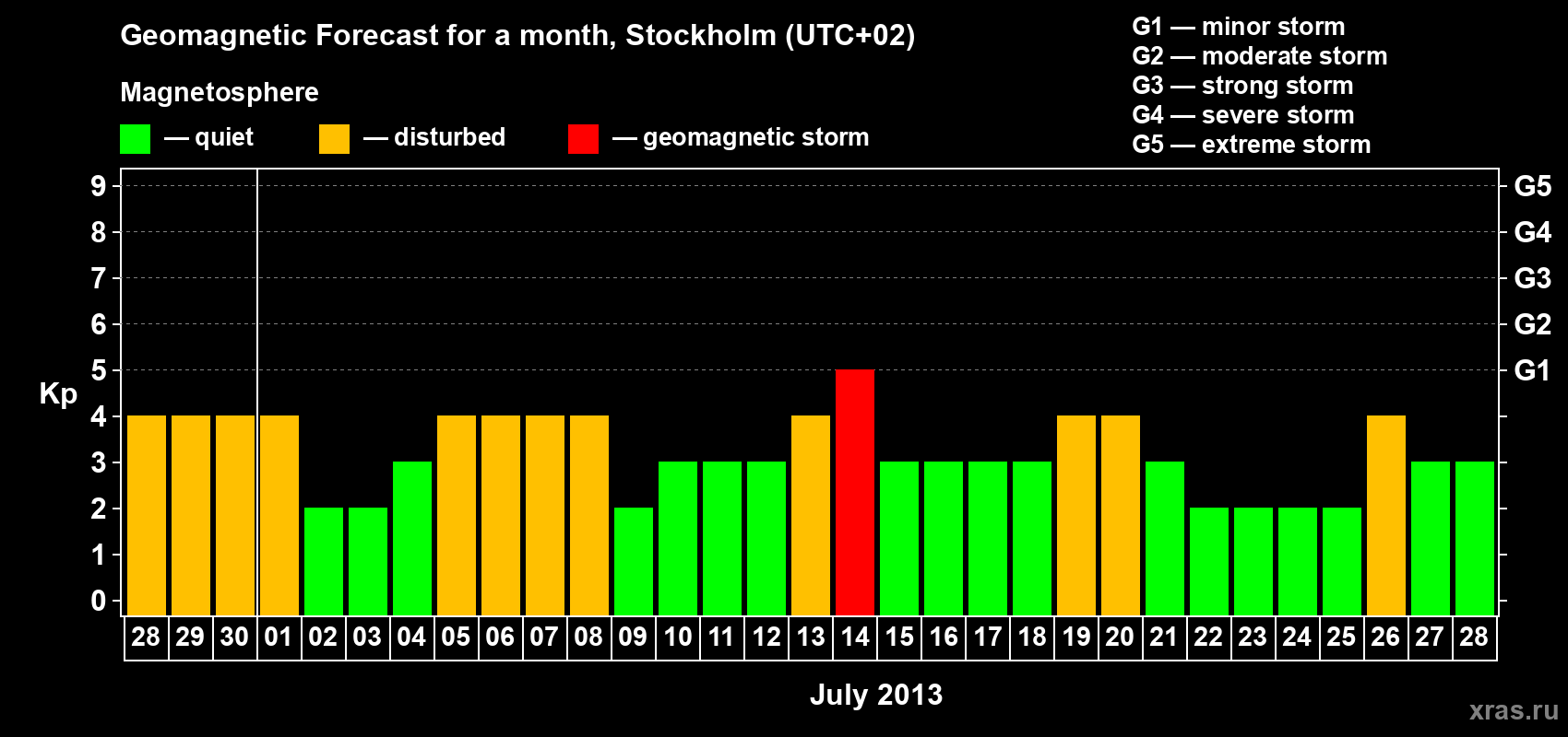 Geomagnetic storm forecast in Stockholm for Jun 28, 2013