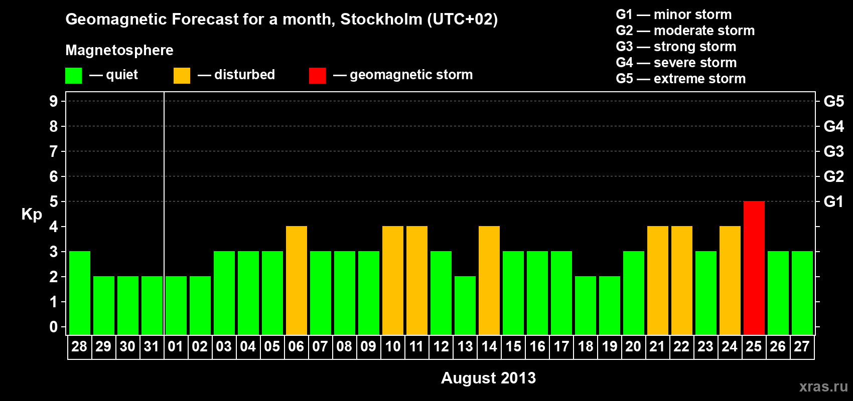 Geomagnetic storm forecast in Stockholm for Jul 28, 2013