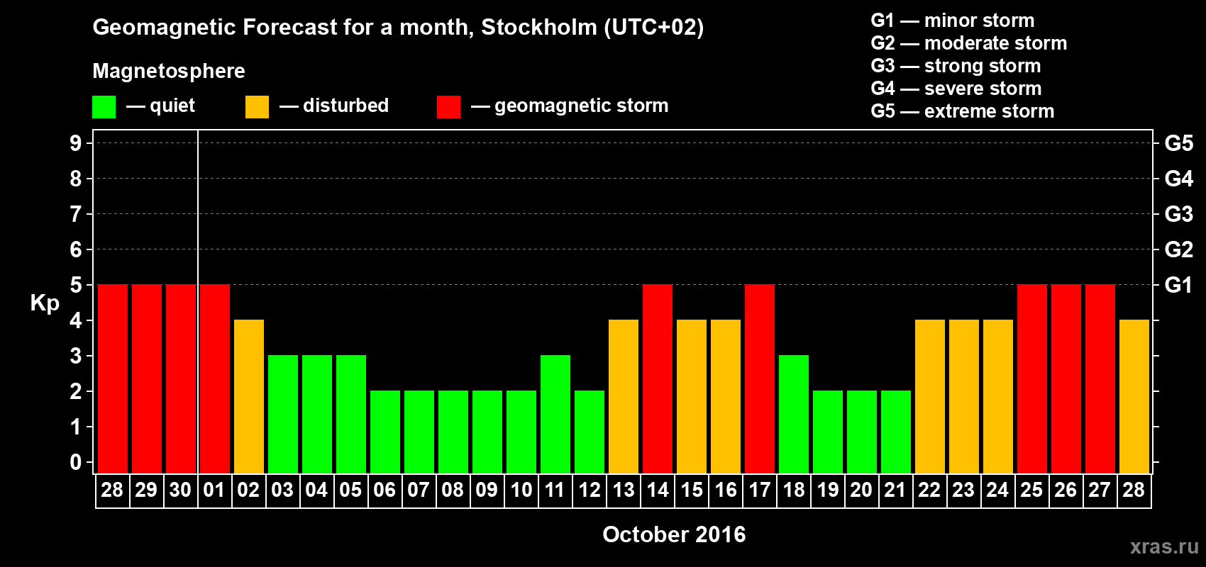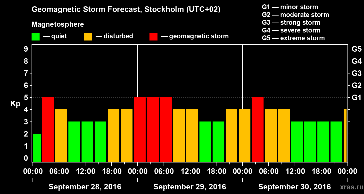 Geomagnetic storm forecast in Stockholm for Sep 28, 2016