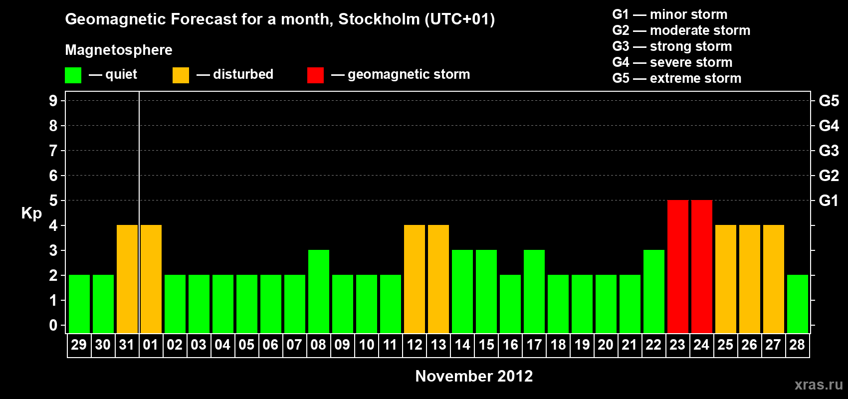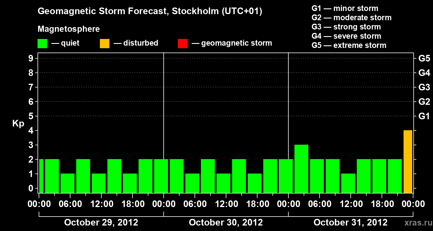 Geomagnetic storm forecast in Stockholm for Oct 29, 2012