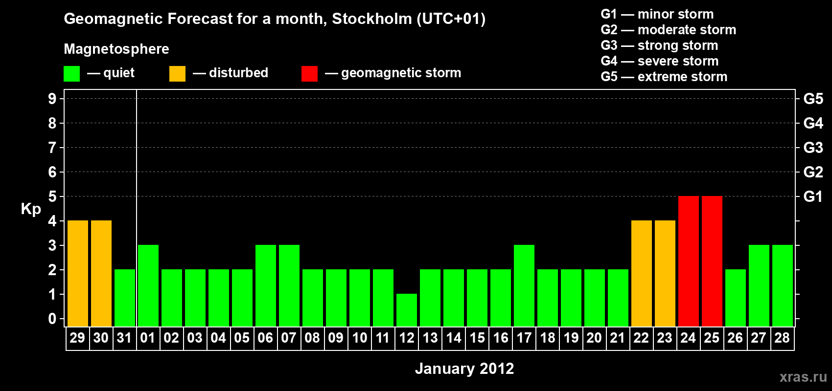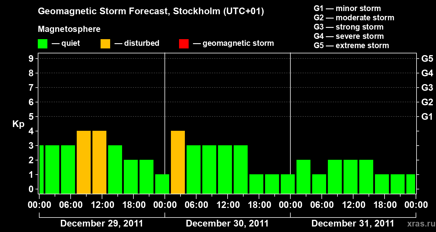 Geomagnetic storm forecast in Stockholm for Dec 29, 2011