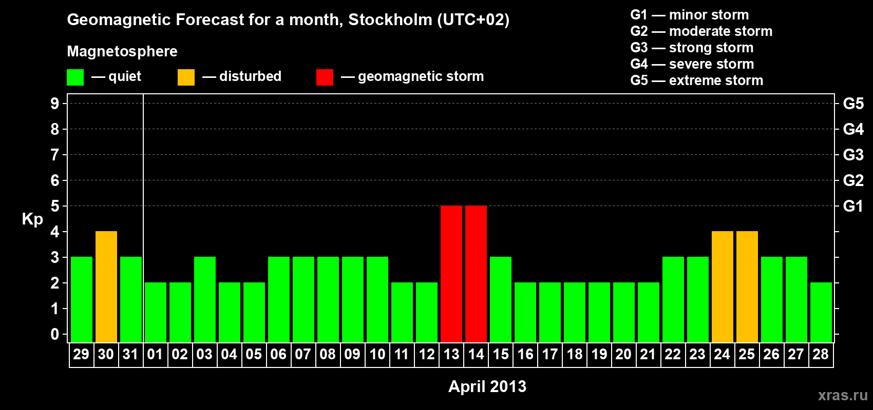 Geomagnetic storm forecast in Stockholm for Mar 29, 2013