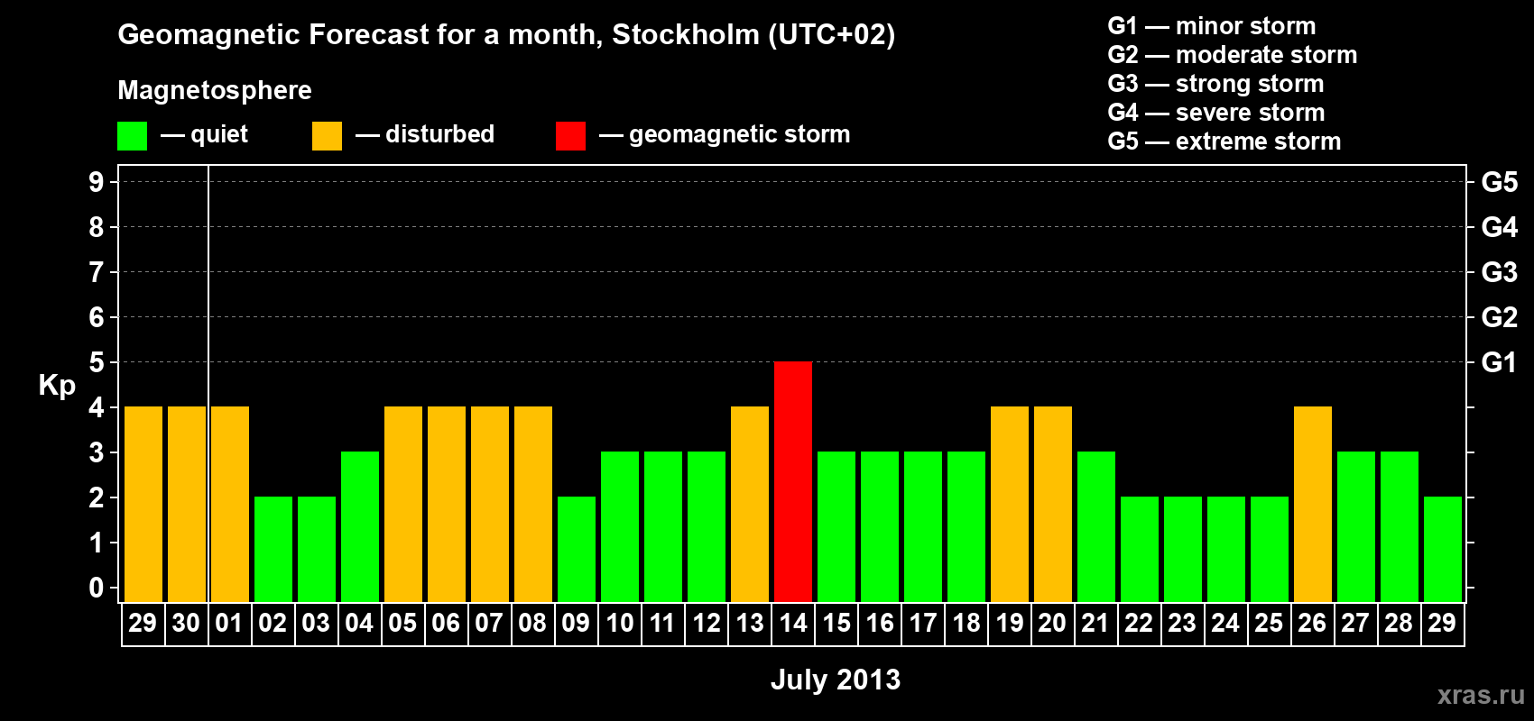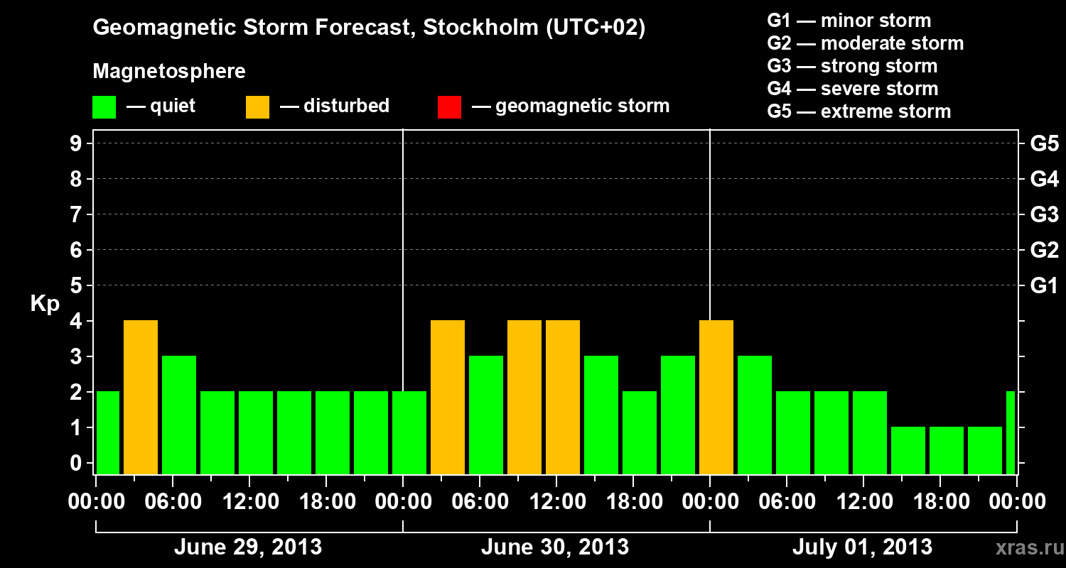Geomagnetic storm forecast in Stockholm for Jun 29, 2013