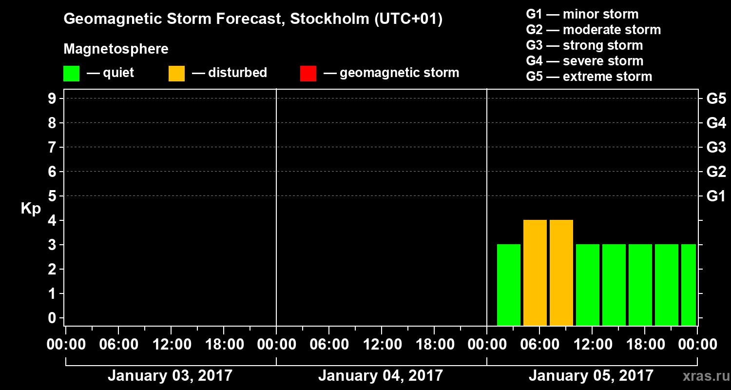 Geomagnetic storm forecast in Stockholm for Jan 03, 2017