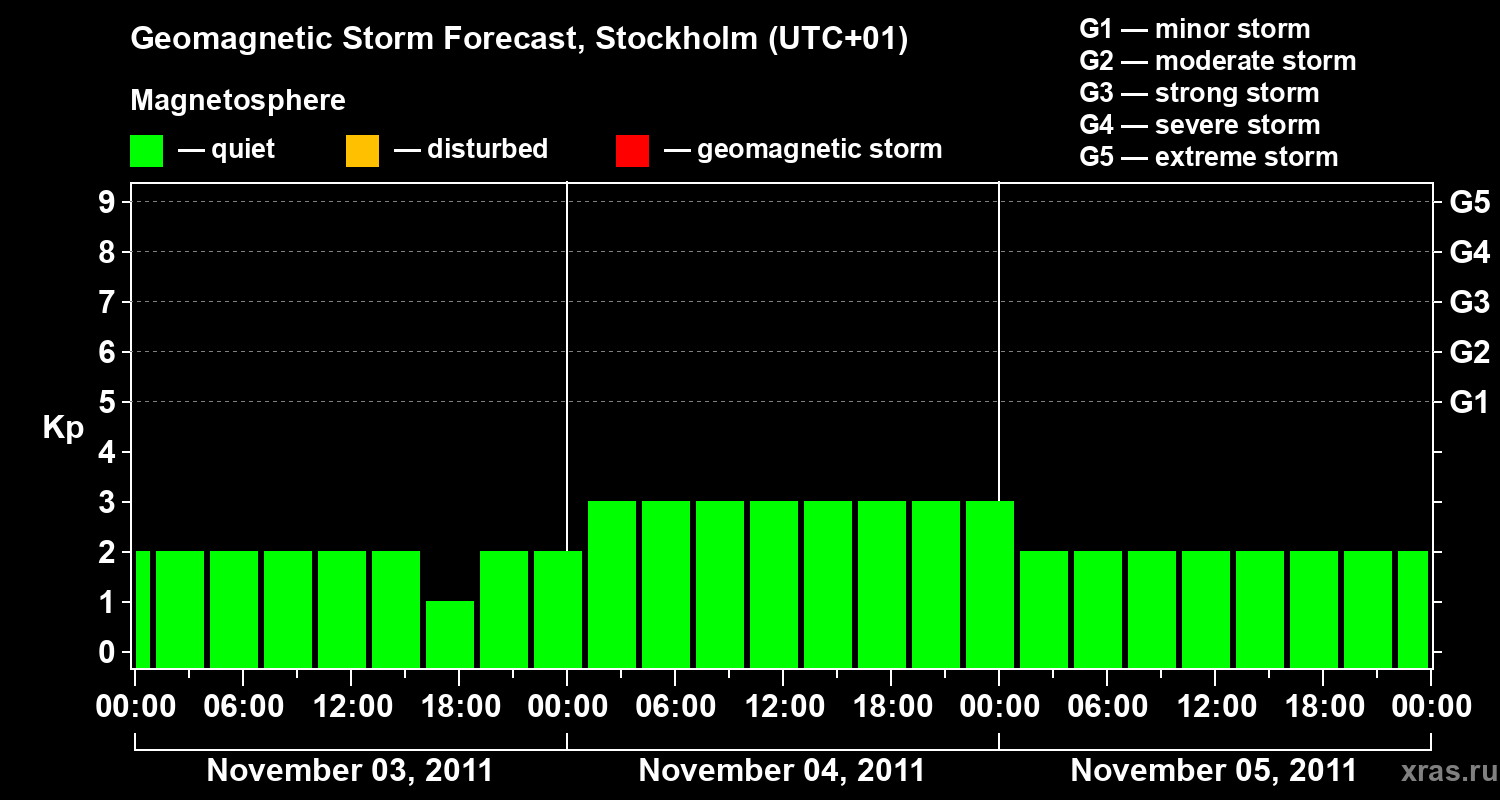 Geomagnetic storm forecast in Stockholm for Nov 03, 2011