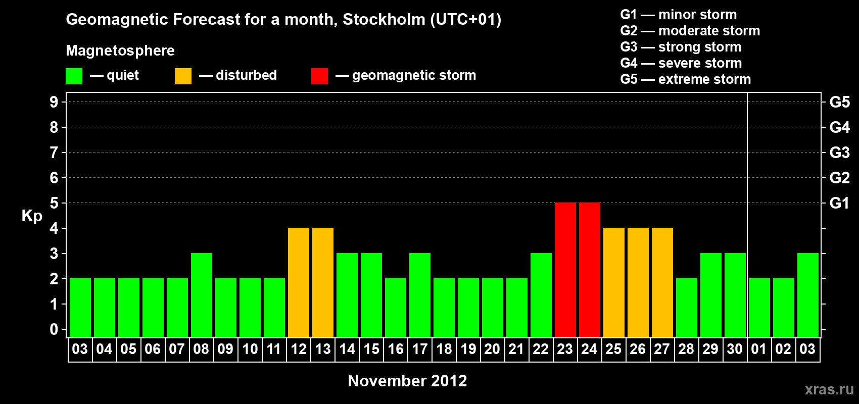 Geomagnetic storm forecast in Stockholm for Nov 03, 2012