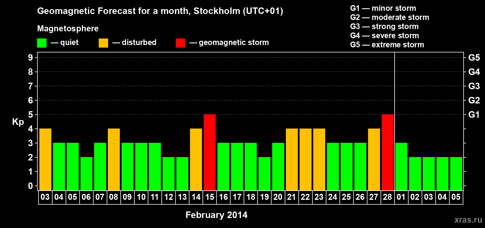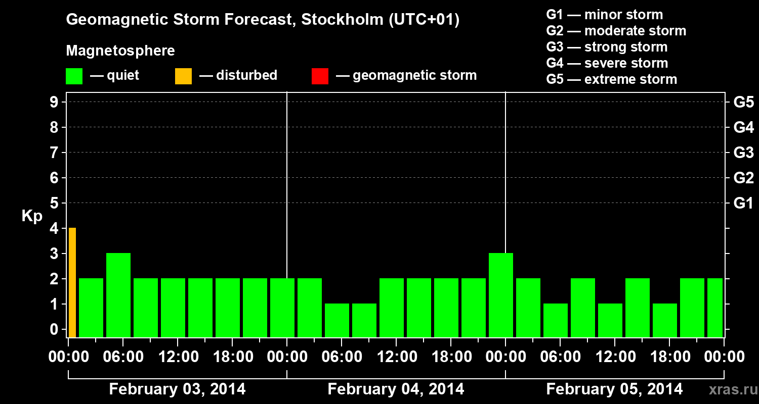 Geomagnetic storm forecast in Stockholm for Feb 03, 2014