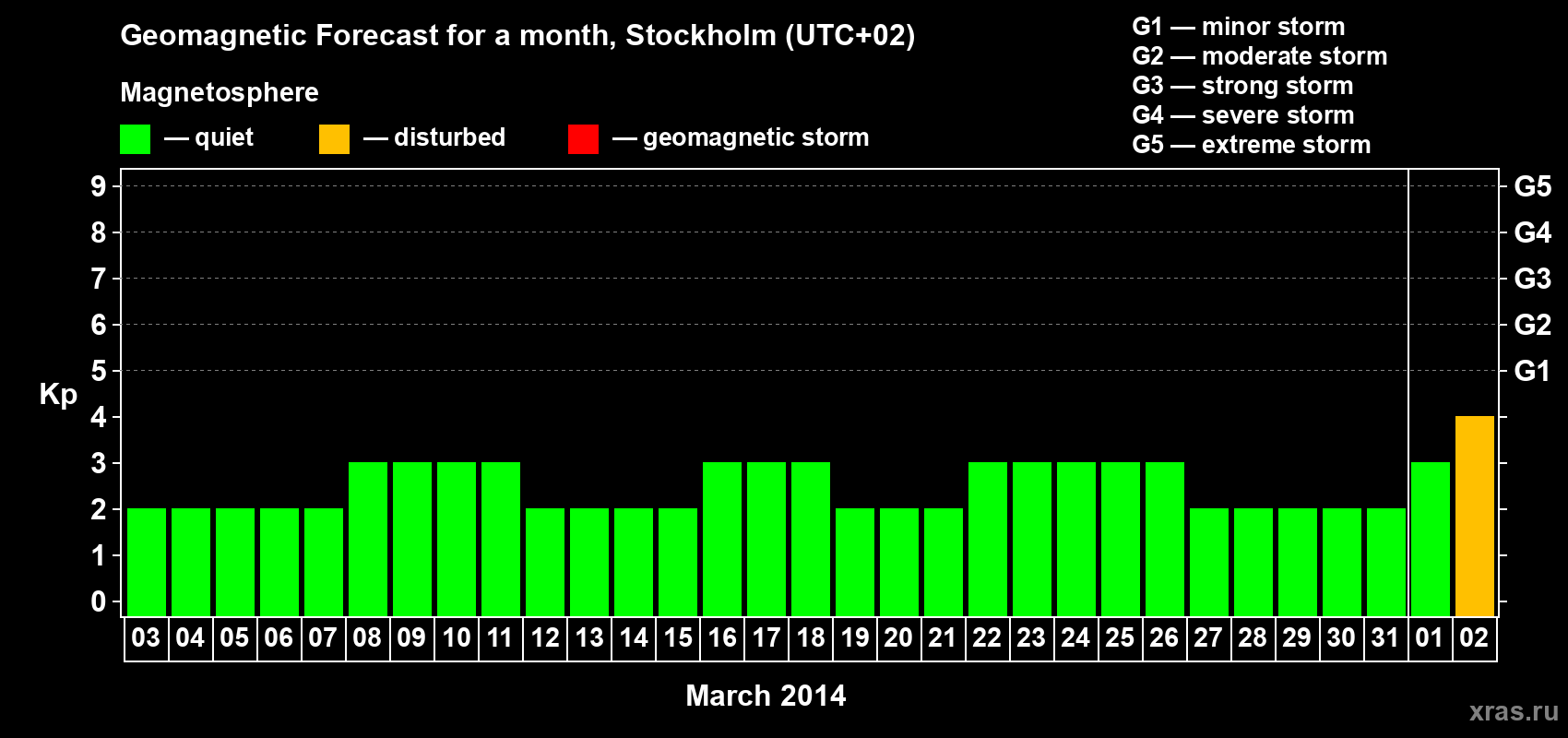 Geomagnetic storm forecast in Stockholm for Mar 03, 2014
