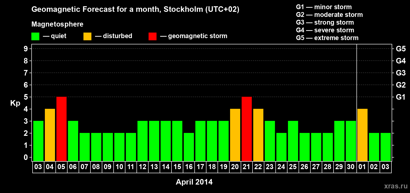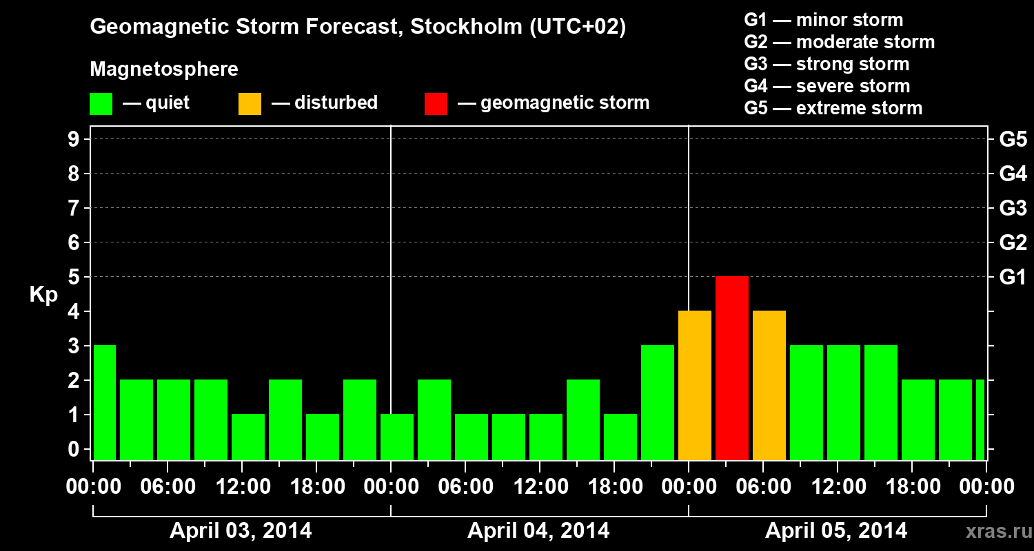 Geomagnetic storm forecast in Stockholm for Apr 03, 2014