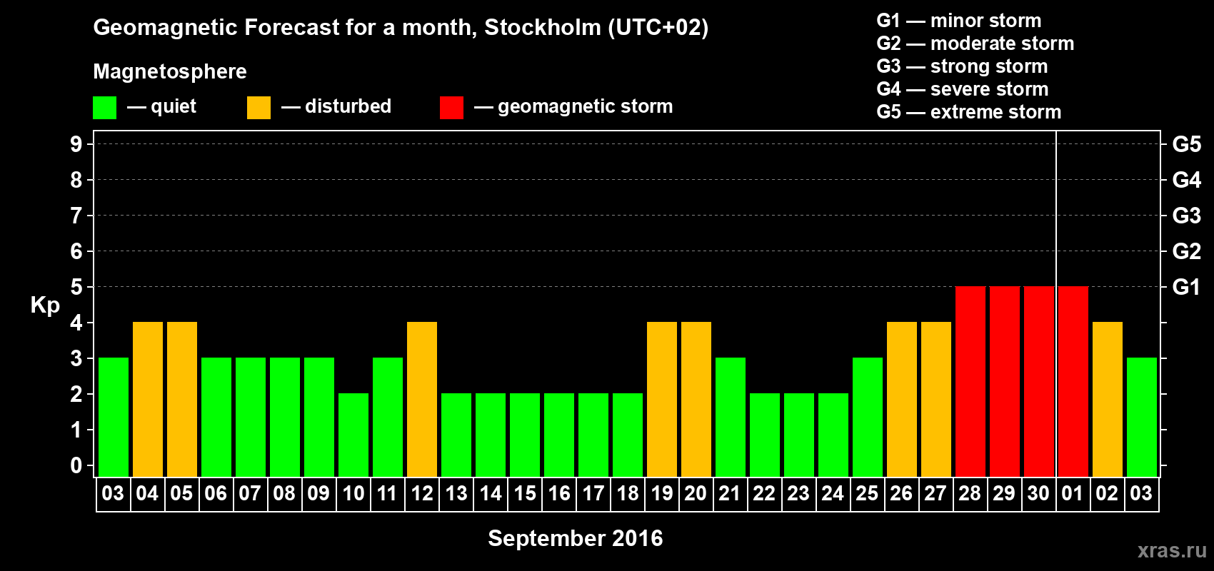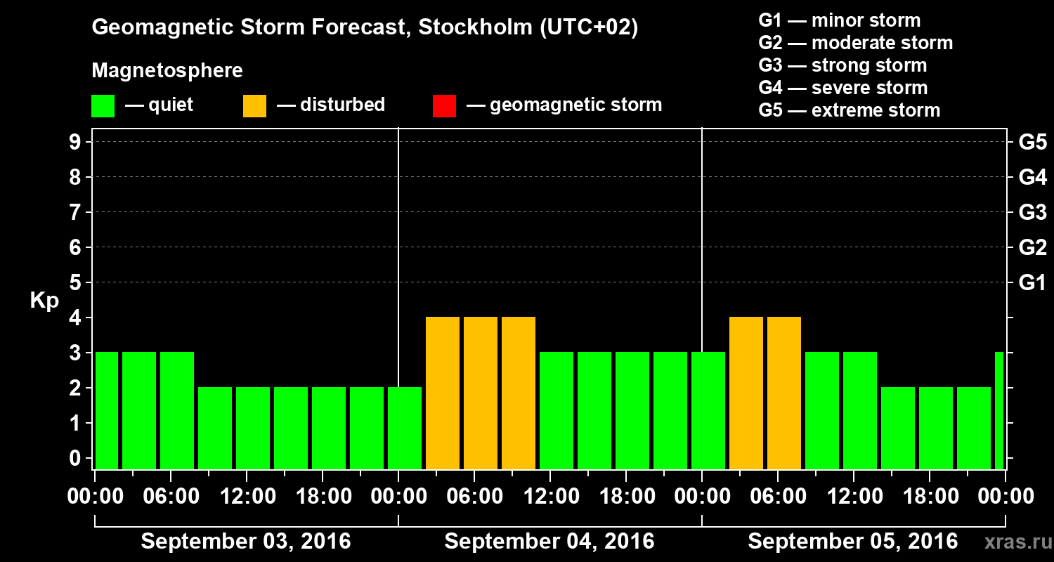 Geomagnetic storm forecast in Stockholm for Sep 03, 2016