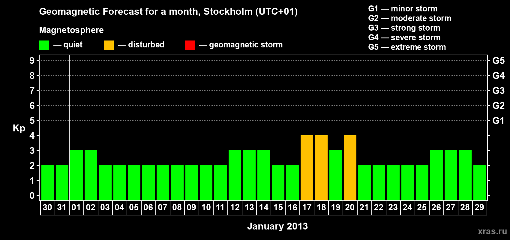 Geomagnetic storm forecast in Stockholm for Dec 30, 2012