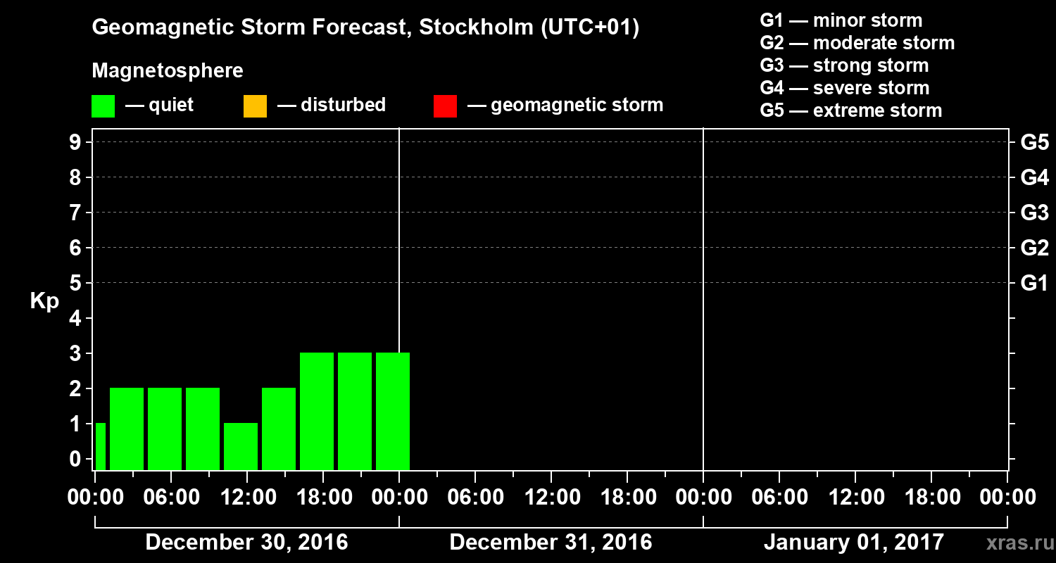 Geomagnetic storm forecast in Stockholm for Dec 30, 2016