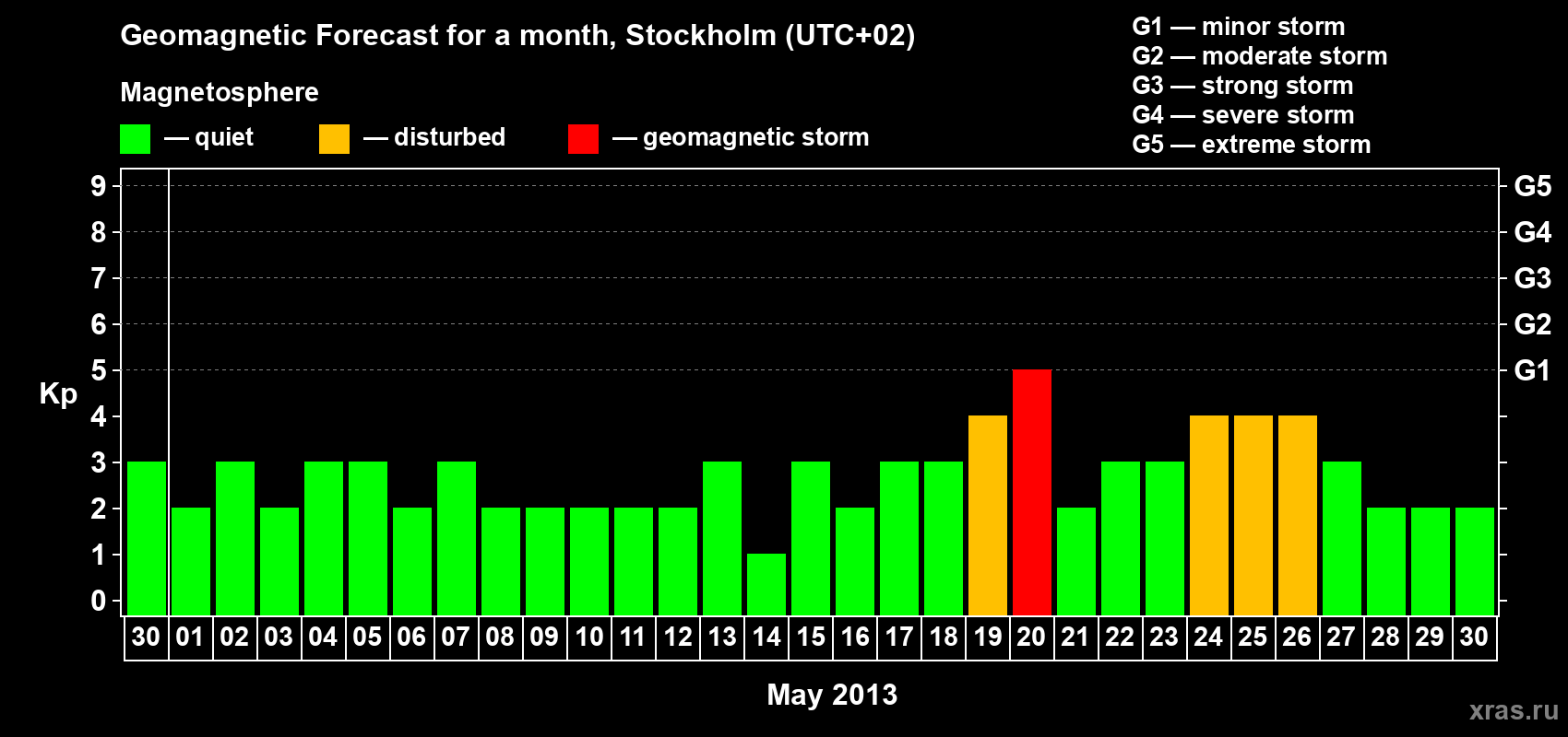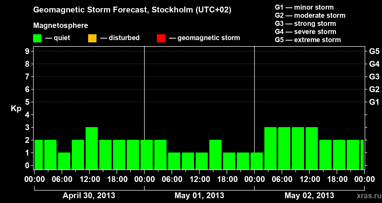 Geomagnetic storm forecast in Stockholm for Apr 30, 2013