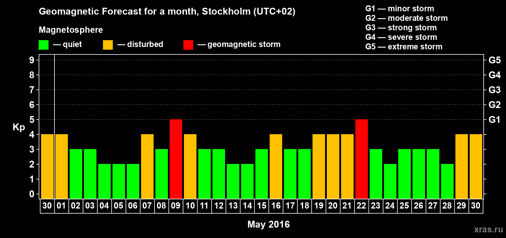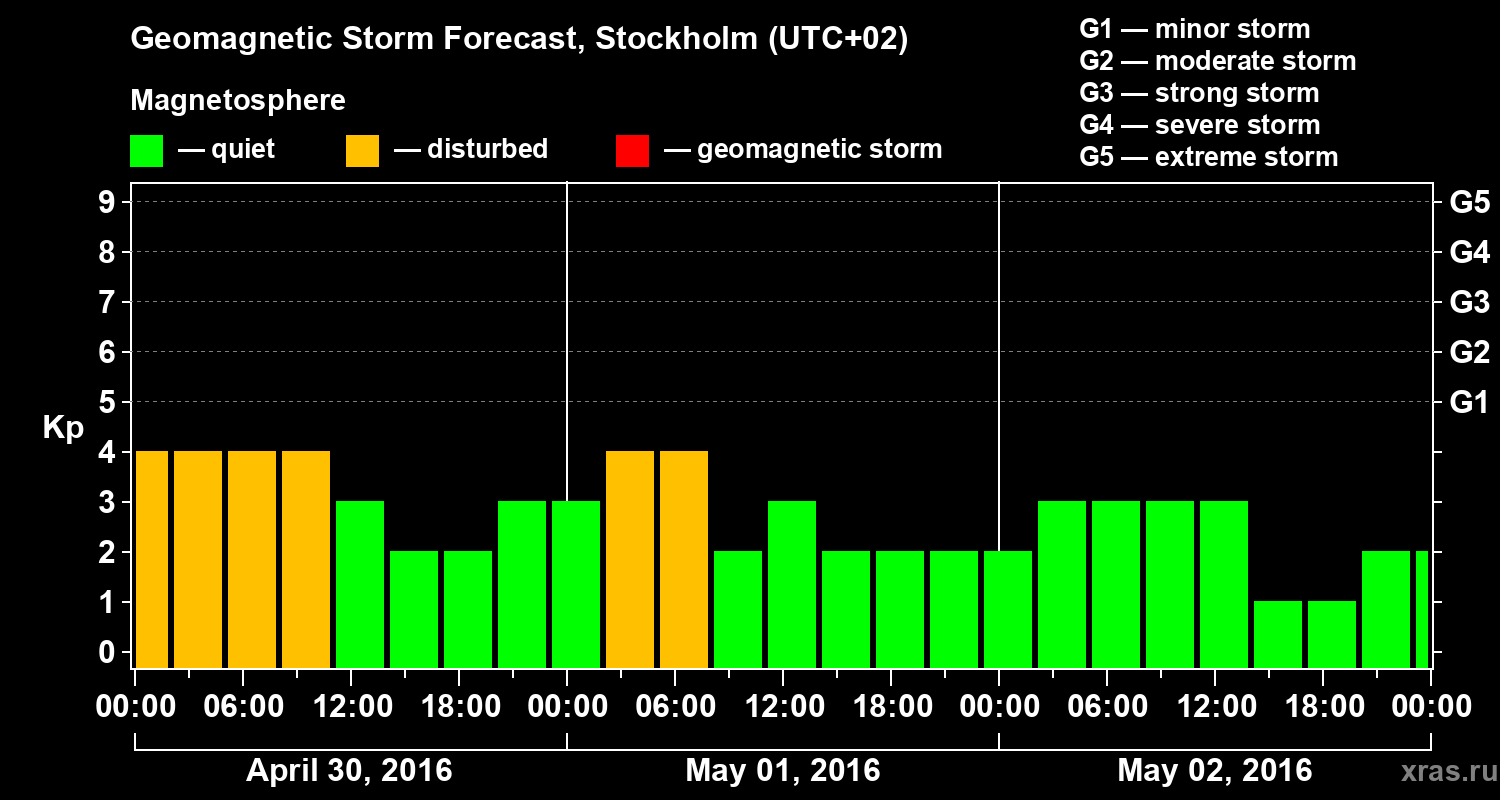 Geomagnetic storm forecast in Stockholm for Apr 30, 2016