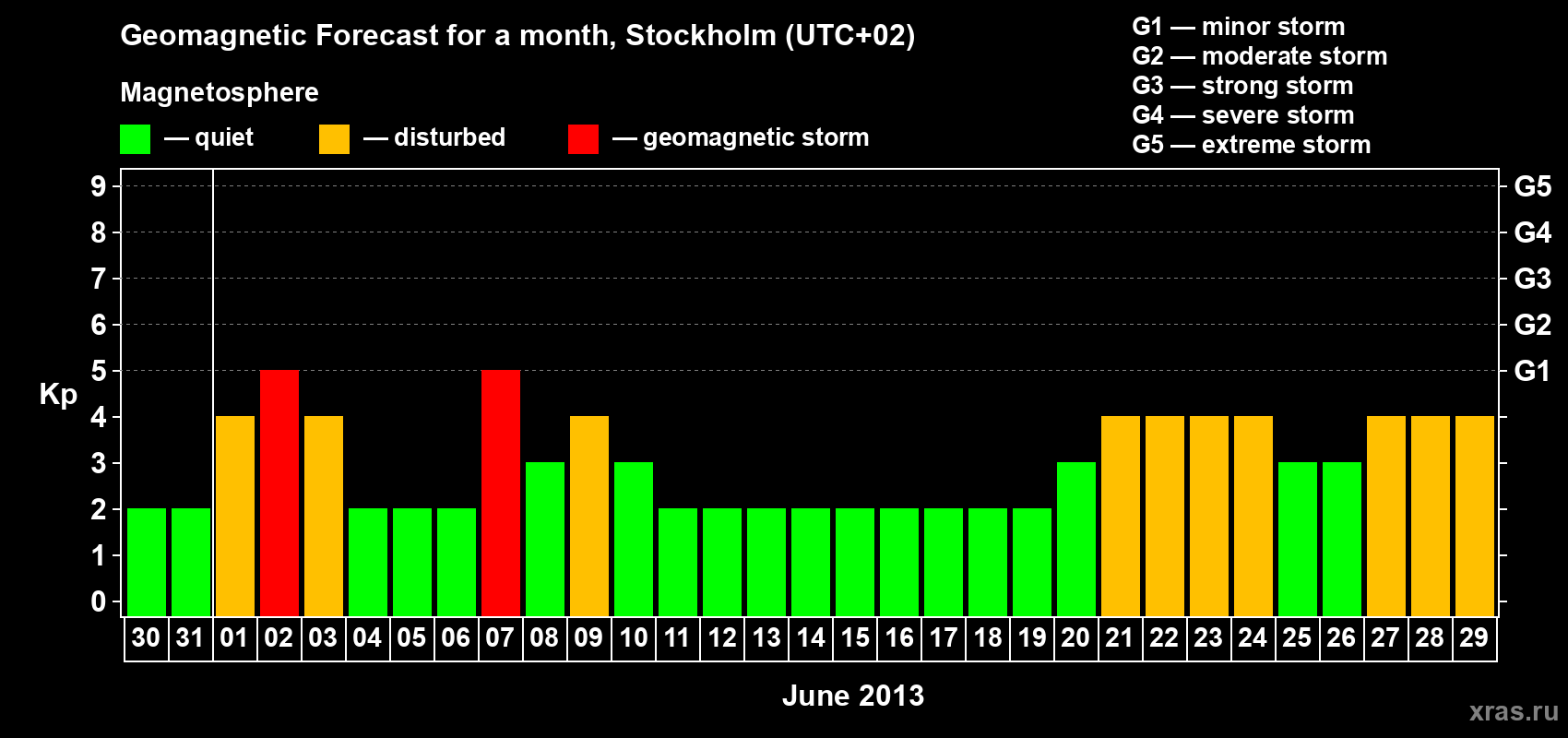 Geomagnetic storm forecast in Stockholm for May 30, 2013
