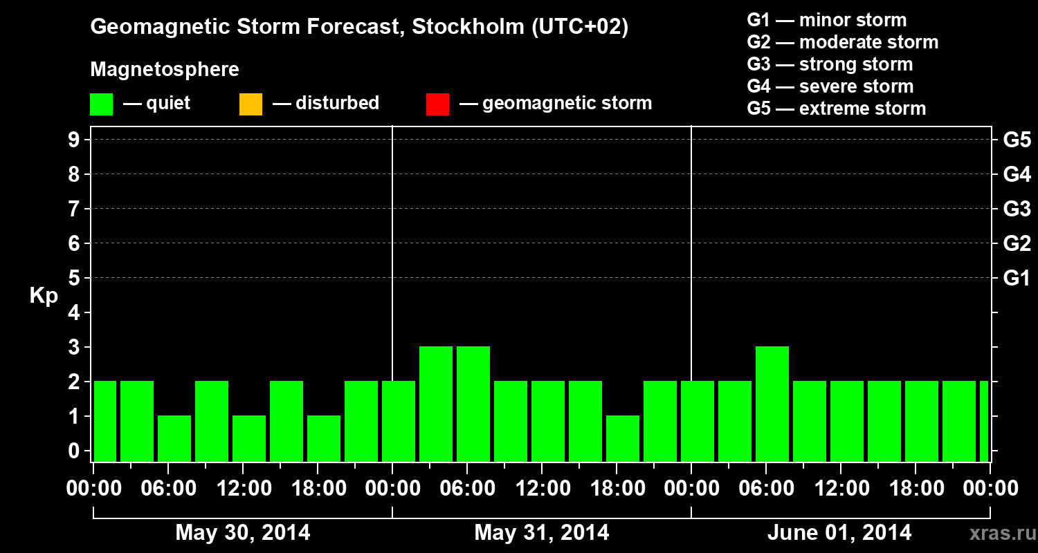 Geomagnetic storm forecast in Stockholm for May 30, 2014