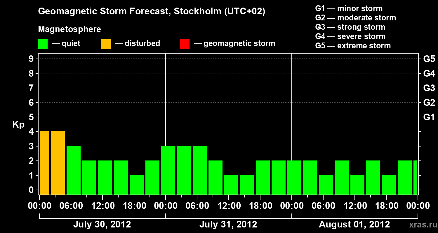 Geomagnetic storm forecast in Stockholm for Jul 30, 2012