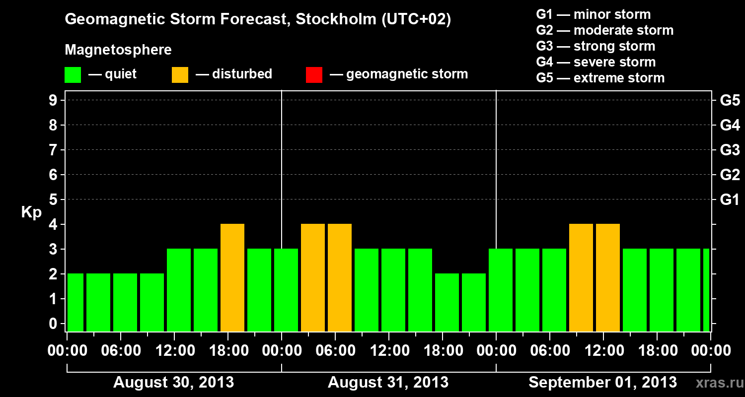 Geomagnetic storm forecast in Stockholm for Aug 30, 2013