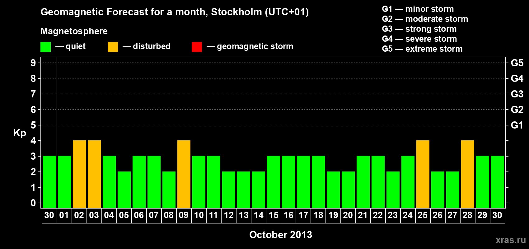 Geomagnetic storm forecast in Stockholm for Sep 30, 2013