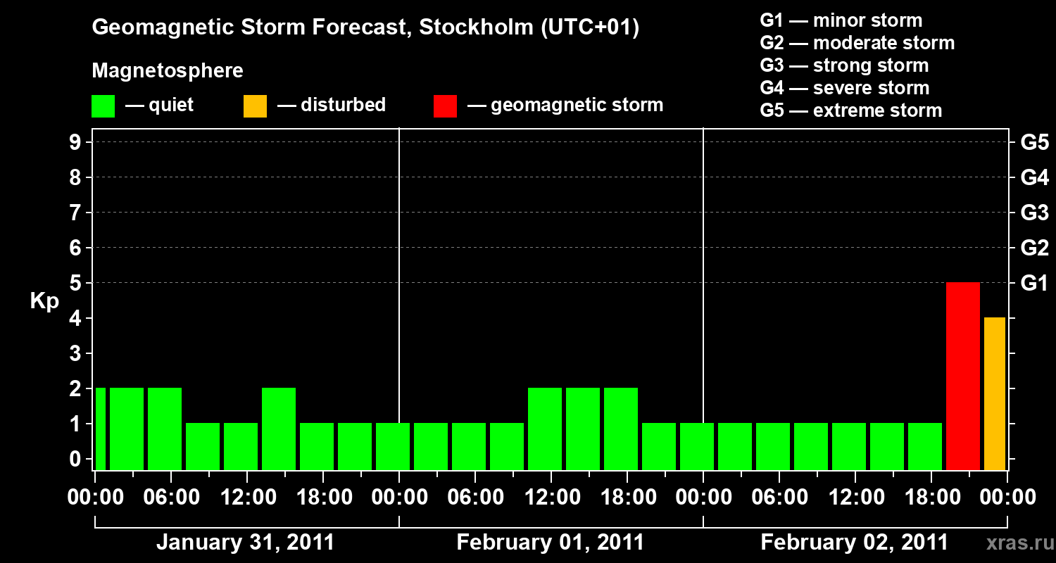 Geomagnetic storm forecast in Stockholm for Jan 31, 2011