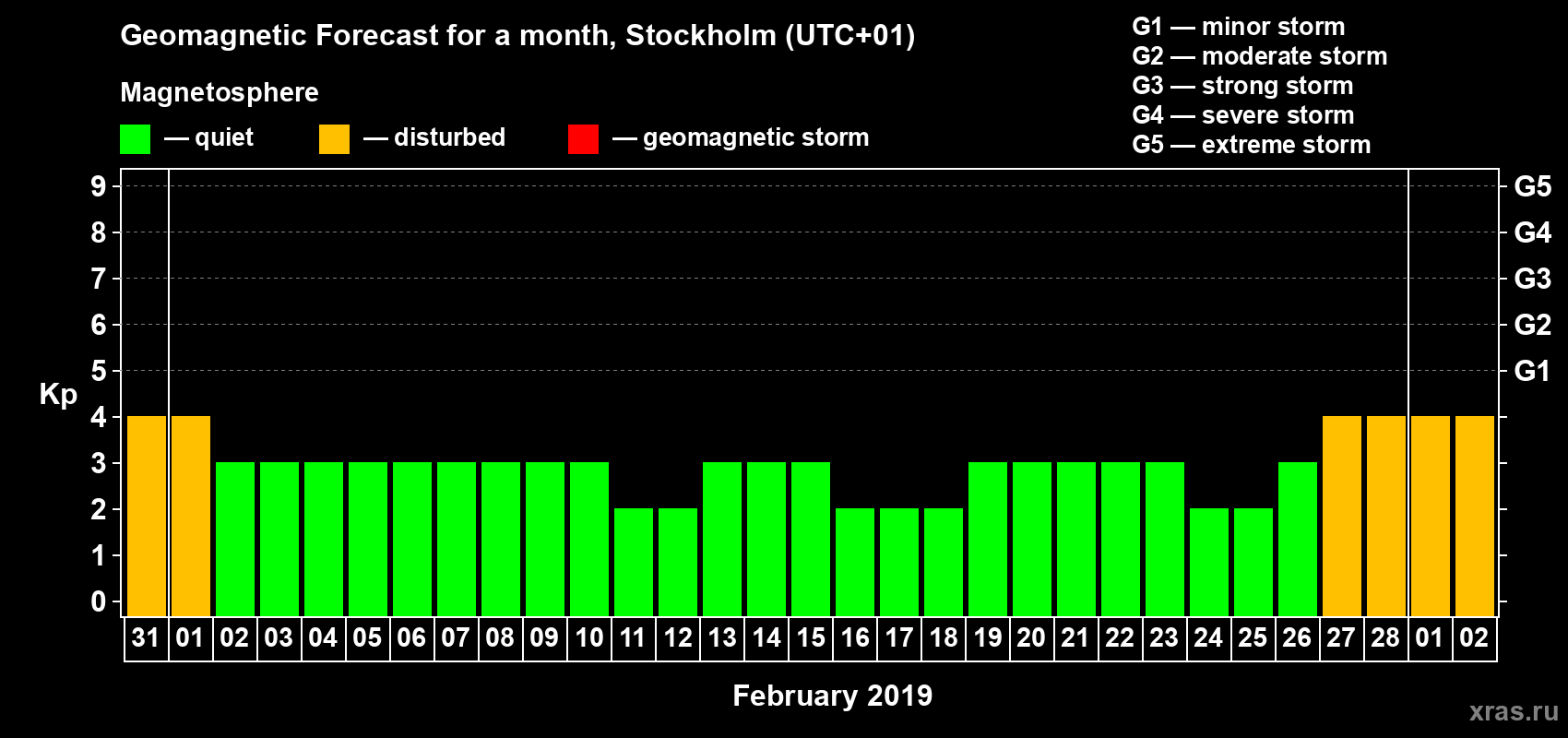 Geomagnetic activity forecast in Stockholm — Jan 31, 2019
