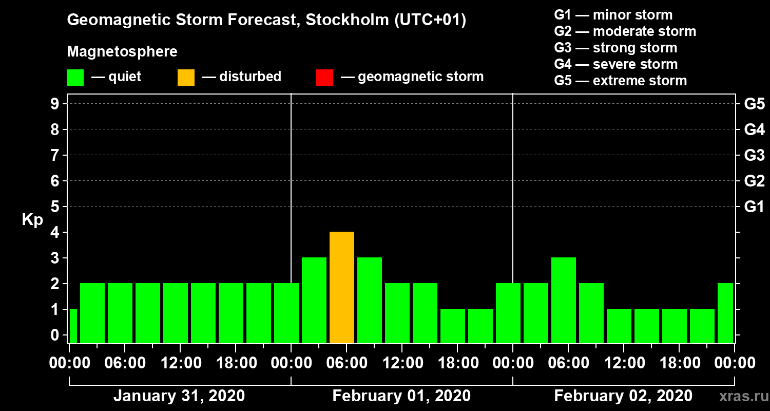 Geomagnetic storm forecast in Stockholm for Jan 31, 2020