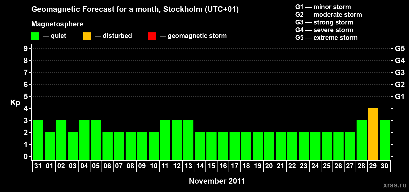 Geomagnetic storm forecast in Stockholm for Oct 31, 2011