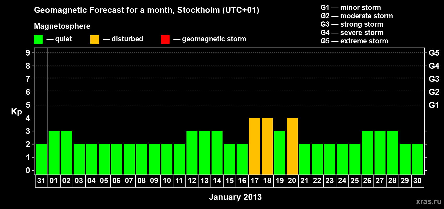 Geomagnetic storm forecast in Stockholm for Dec 31, 2012