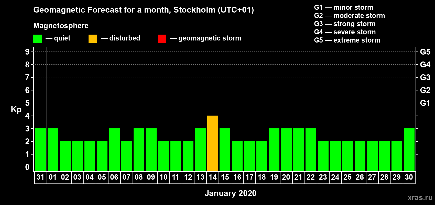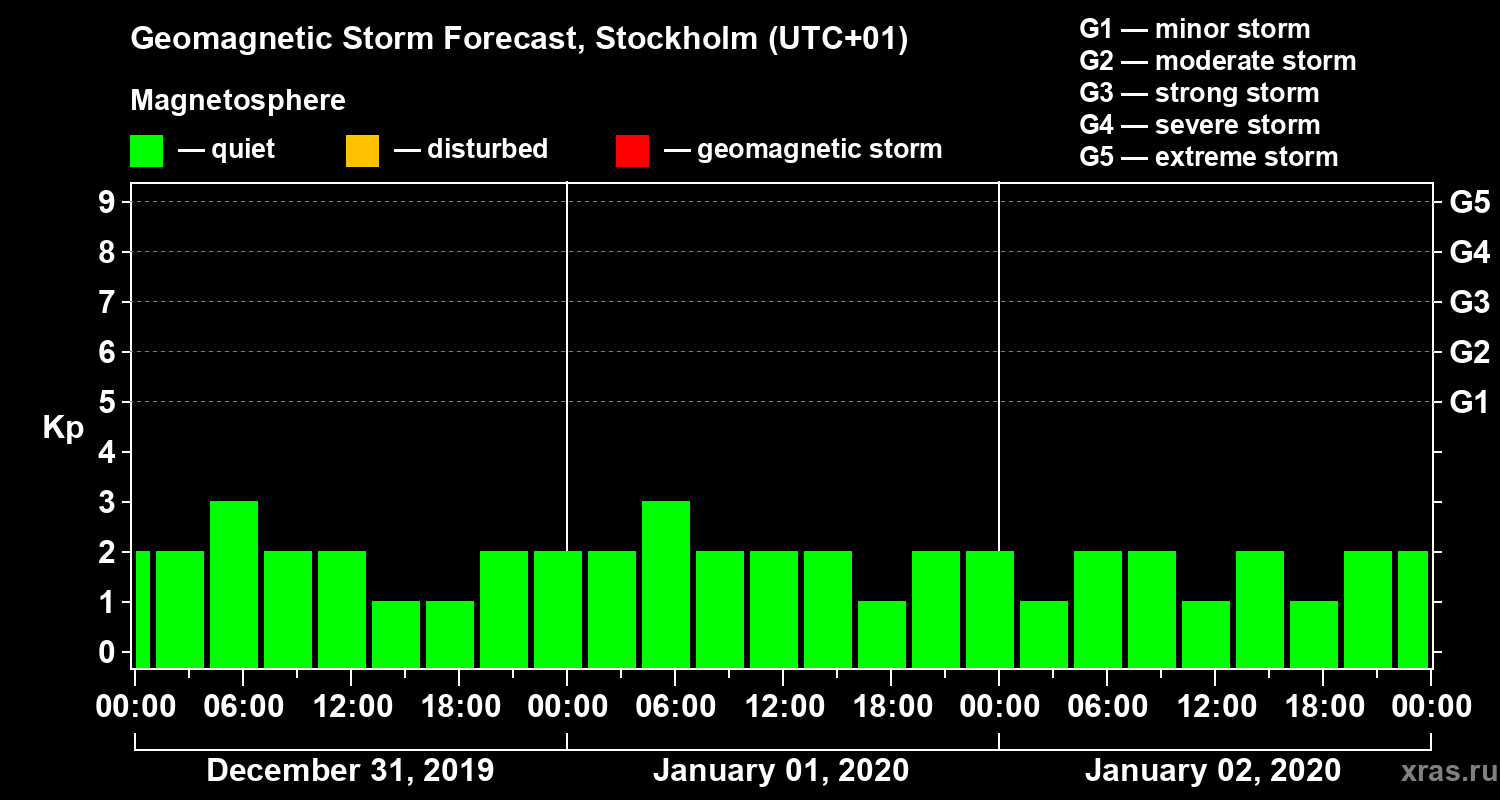 Geomagnetic storm forecast in Stockholm for Dec 31, 2019
