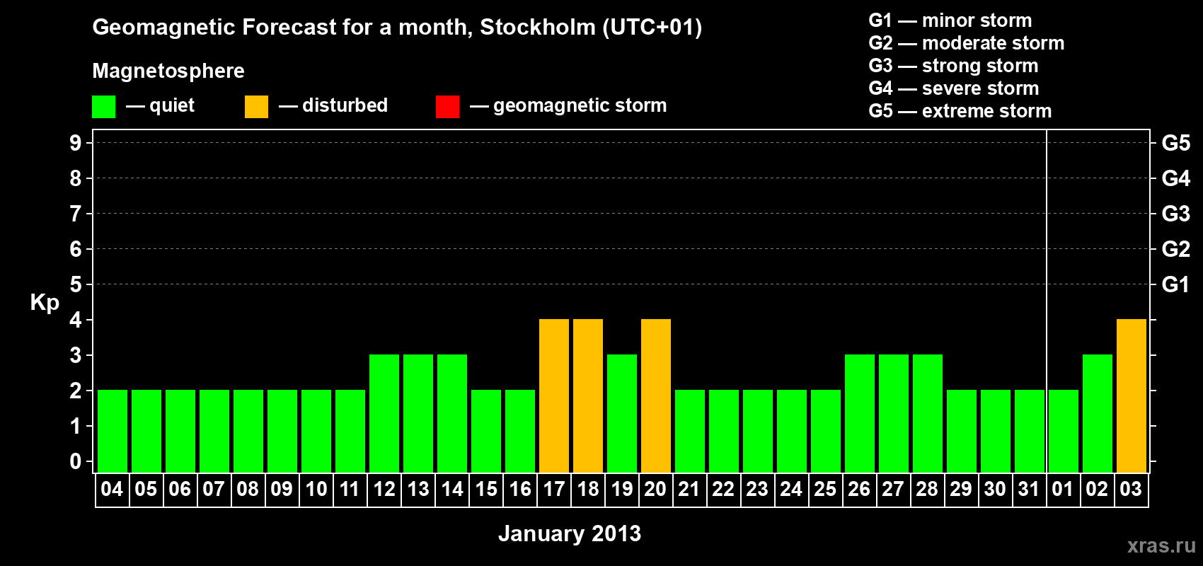 Geomagnetic storm forecast in Stockholm for Jan 04, 2013