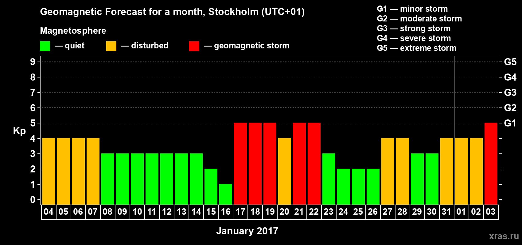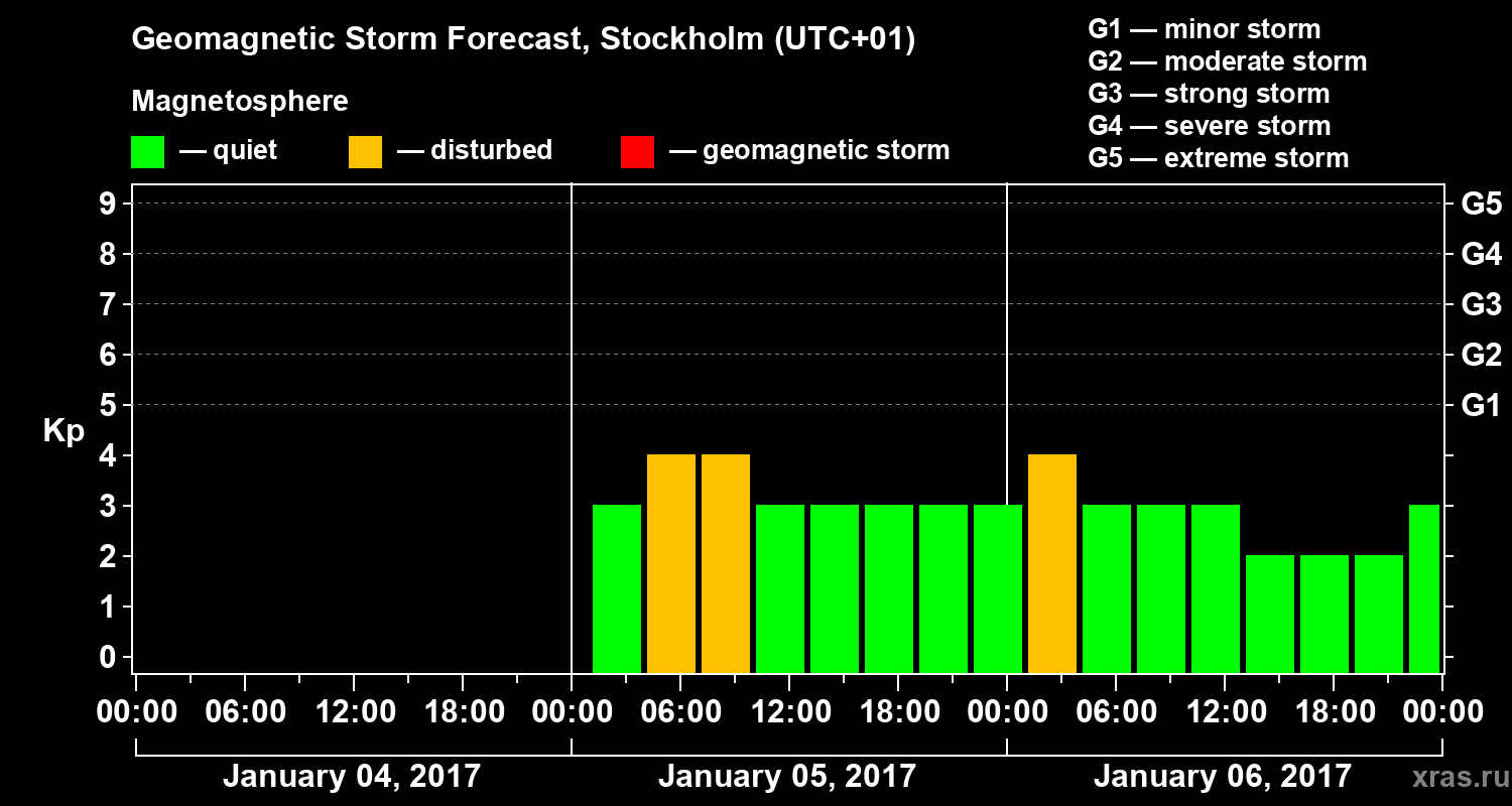 Geomagnetic storm forecast in Stockholm for Jan 04, 2017