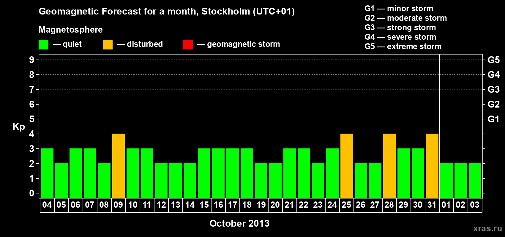 Geomagnetic storm forecast in Stockholm for Oct 04, 2013