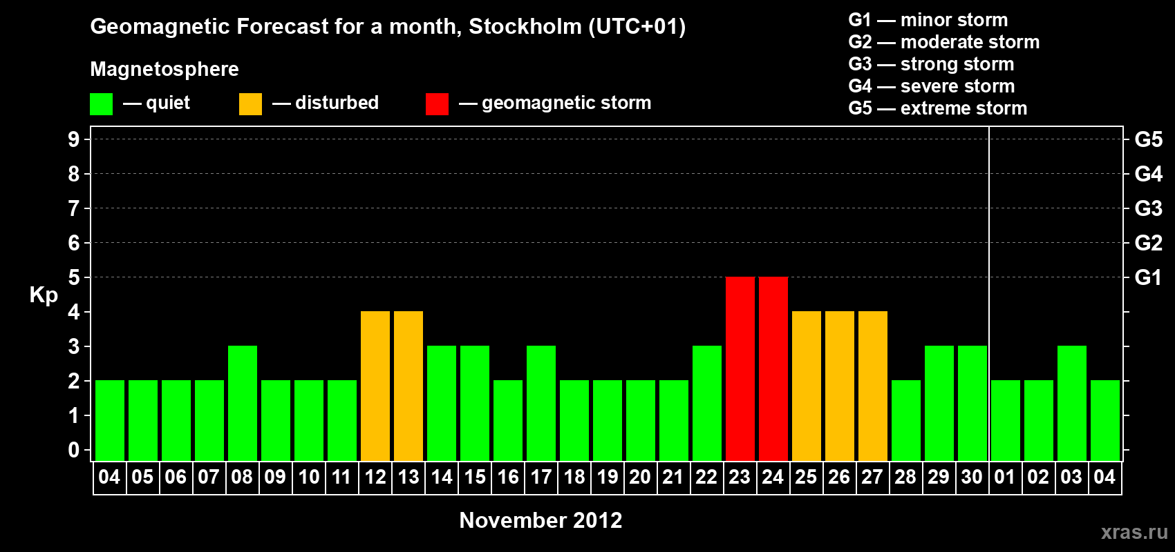 Geomagnetic storm forecast in Stockholm for Nov 04, 2012