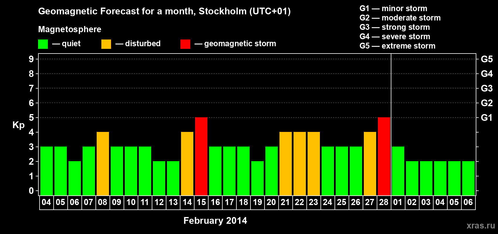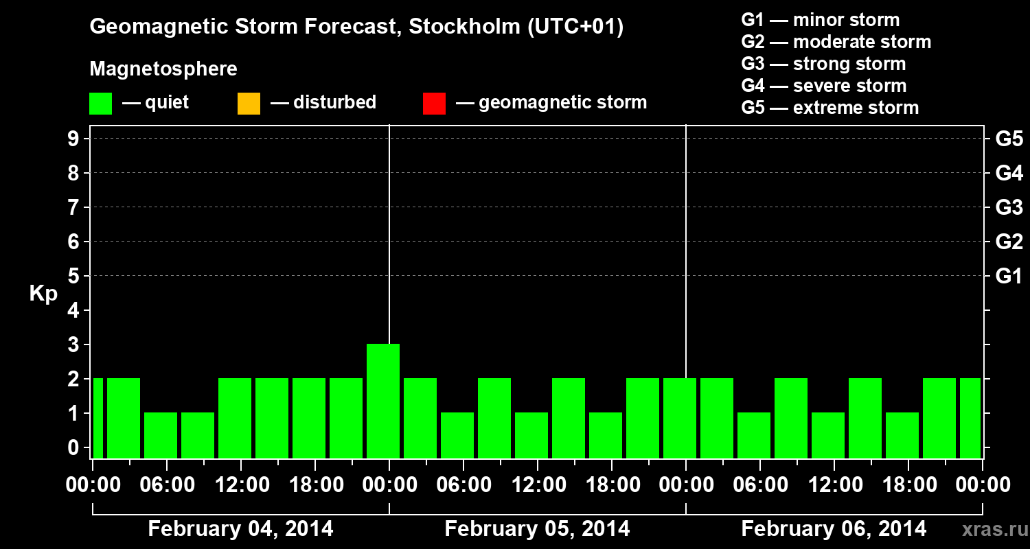Geomagnetic storm forecast in Stockholm for Feb 04, 2014