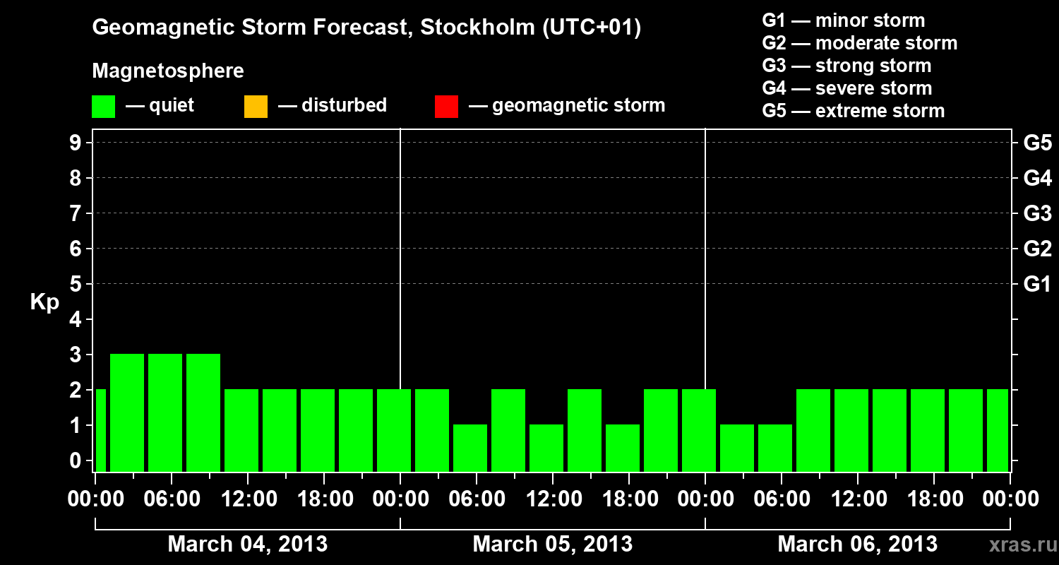 Geomagnetic storm forecast in Stockholm for Mar 04, 2013