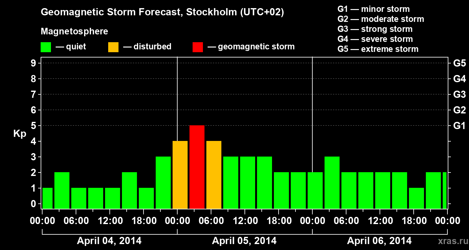 Geomagnetic storm forecast in Stockholm for Apr 04, 2014