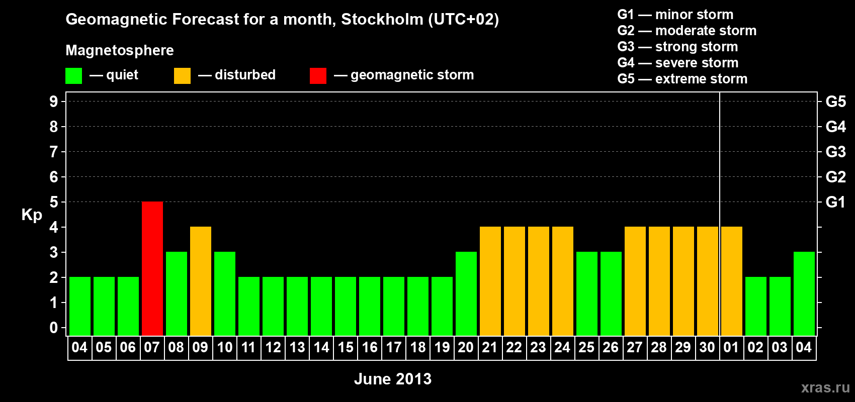 Geomagnetic storm forecast in Stockholm for Jun 04, 2013